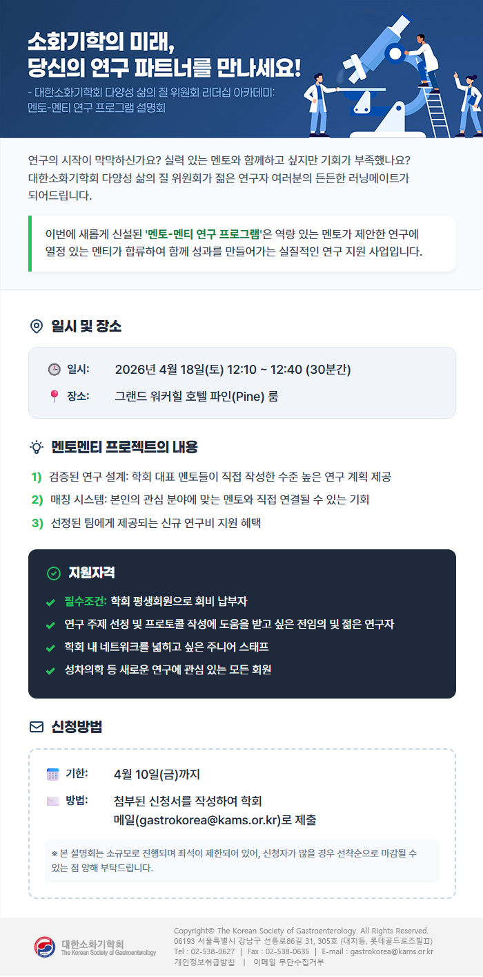 [학회공지] 대한소화기학회 멘토-멘티 연구 프로그램 안내(4/18)