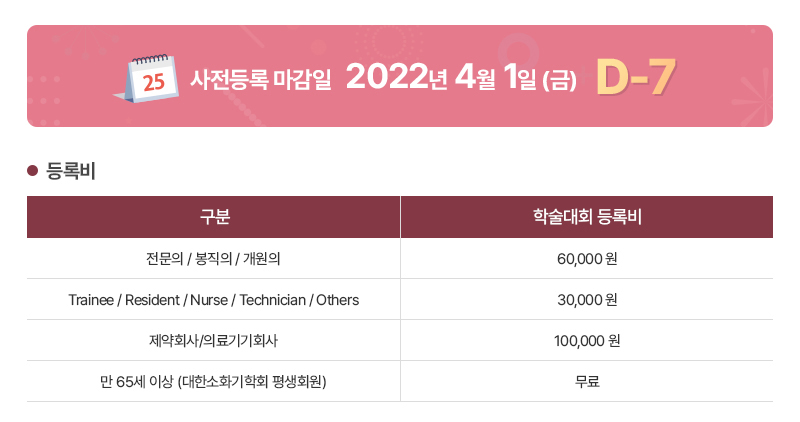 [학회공지] 2022 대한소화기학회 춘계학술대회 사전등록 안내(D-7)