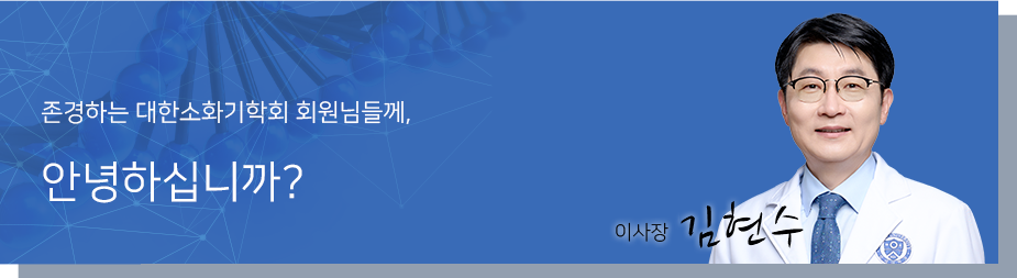 대한소화기학회는 새로운 도약을 위한 시험대 위에 서 있습니다. 지난 60여 년간 축적해 온 지식과 경험 위에, 변화하는 의료 환경과 기술 발전을 능동적으로 받아들이는 유연성이 더해질 때 학회는 더욱 발전할 수 있습니다. 저는 회원 여러분과 함께 과학적 진보와 환자 중심의 따뜻한 진료가 조화를 이루는 학회를 만들어가고자 합니다. 환자를 위한 더 나은 의료, 연구자에게 열린 학술 생태계, 젊은 세대가 성장할 수 있는 든든한 교육 기반은 결국 회원 한 분 한 분의 관심과 참여를 통해 완성됩니다. 부디 대한소화기학회가 진정한 모학회로서 따뜻하고, 이끌어가며, 지속적으로 발전하고 도약할 수 있도록 저희 임원-위원진들이 뵙고 인사드릴 때마다 아낌없는 조언과 격려를 부탁드립니다.
