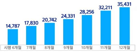 (그림 1) 국내 연명의료 거부 환자 추이, 자료: 국립연명의료관리센터, 단위: 명, 누적환자기준